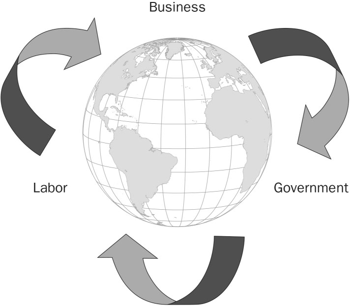Lodge (1995) provided a generalized definition of the globalization concept, stating that “globalization is the process whereby the world’s people are becoming increasingly interconnected in all facets of their lives—cultural, economic, political, technological, and environmental” (p. 1). To further explain global business and the process of globalization, we must clarify the nature of global business transactions. Businesses involved with the development, production, and distribution of textile and apparel products in a global market potentially deal with a combination of financial, trade and investment, and labor transactions. These transactions incorporate the operation of businesses, labor, and governments in the global context. See and think about Figure 1.1.