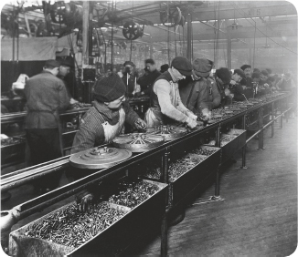 Plate 6 The flow-line principle of assembly work, known as Fordism, increased management control over how workers performed their tasks. Fordism led to the intensification of work and productivity through ever-greater job fragmentation.