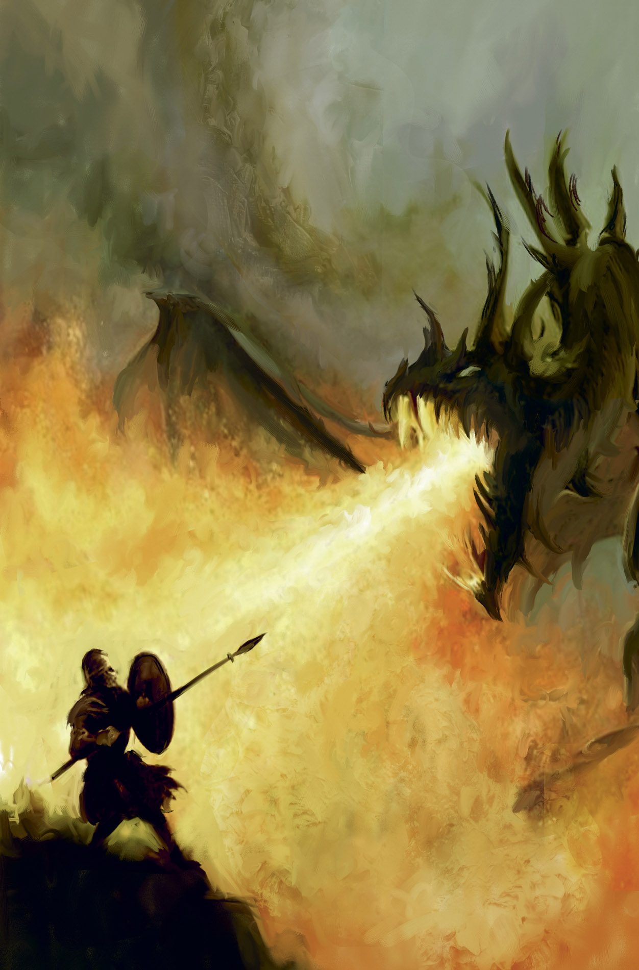 The Dragon is a sadder character. He is described as ‘last of his kin’, and he sits all alone with his mound of gold until one man steals a golden goblet and arouses the wrath of the beast. He too is an inversion of nature, able to spew forth fire. There is a tragedy to Beowulf and the dragon’s encounter, since both are old and aware that death awaits them. There’s almost a sense of the death of a world here, and the end of a strange yet marvellous era.