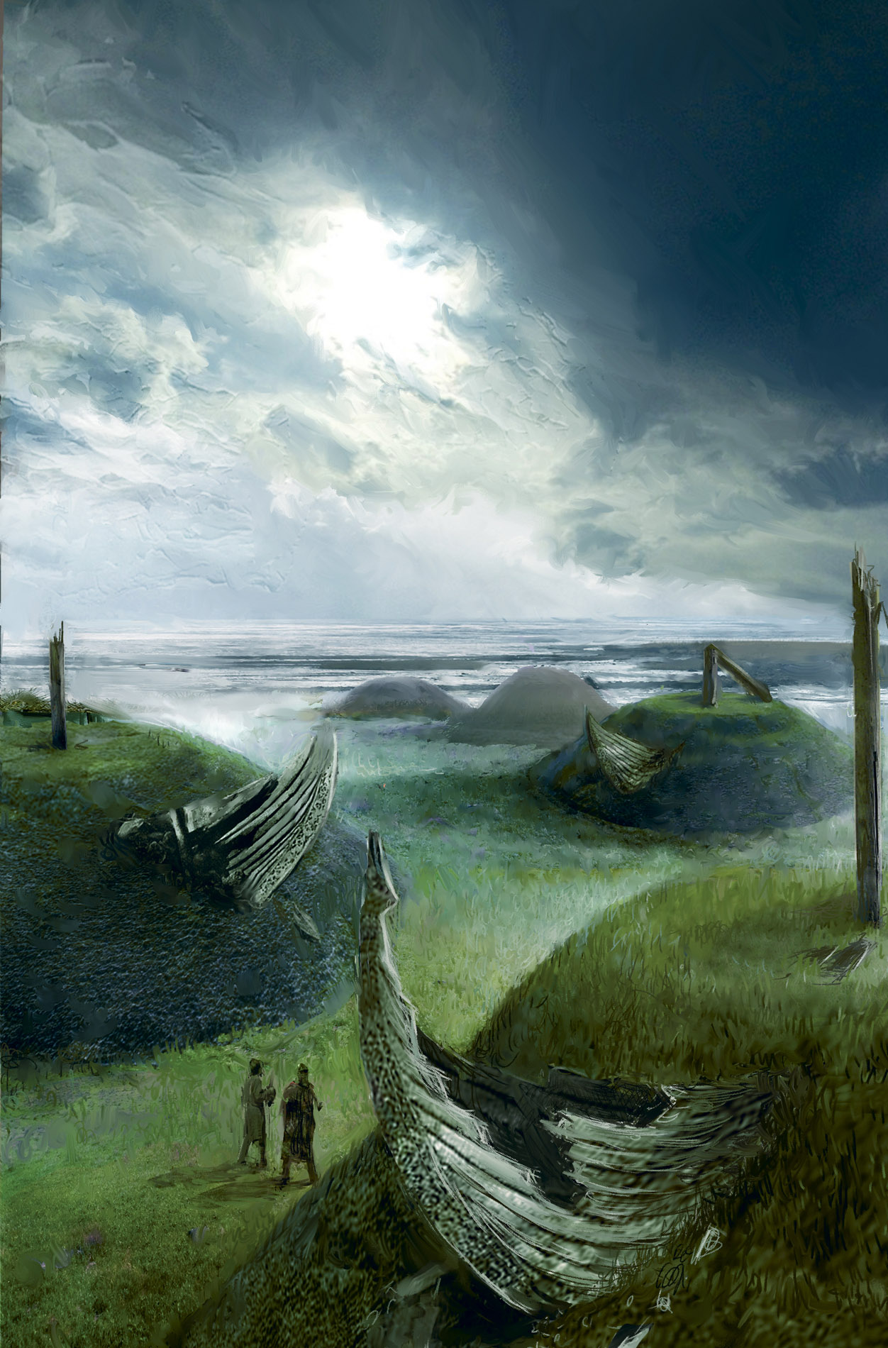 Another semi-legendary king, Eadgils, Ohthere’s son, is mentioned in Beowulf. Snorri recorded that the kings were buried in Gamla Uppsala, territory of the Ynglings. A sixth-century royal burial was discovered there, thought to be Eadgils, laid out in a bearskin with Middle Eastern cameos, a gold- and garnet-encrusted Frankish sword and ivory pawns from a Roman board game.